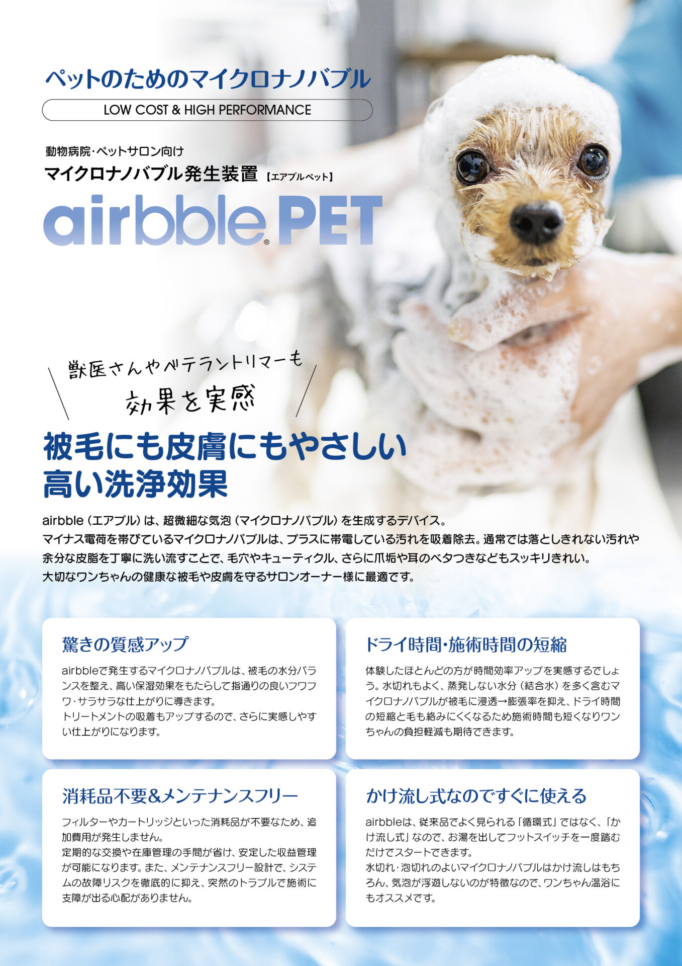 かけ流すだけで様々な効果を実感できお客様の満足度と売上アップを期待できます。